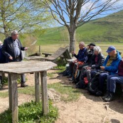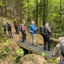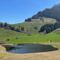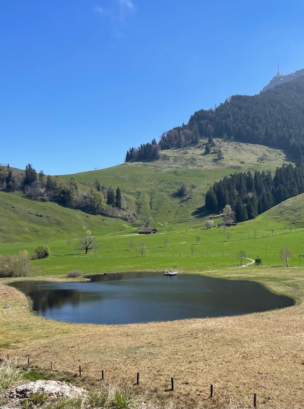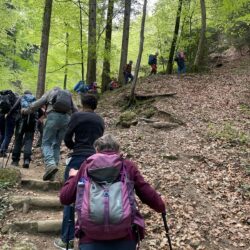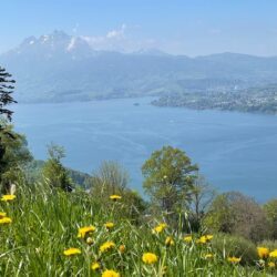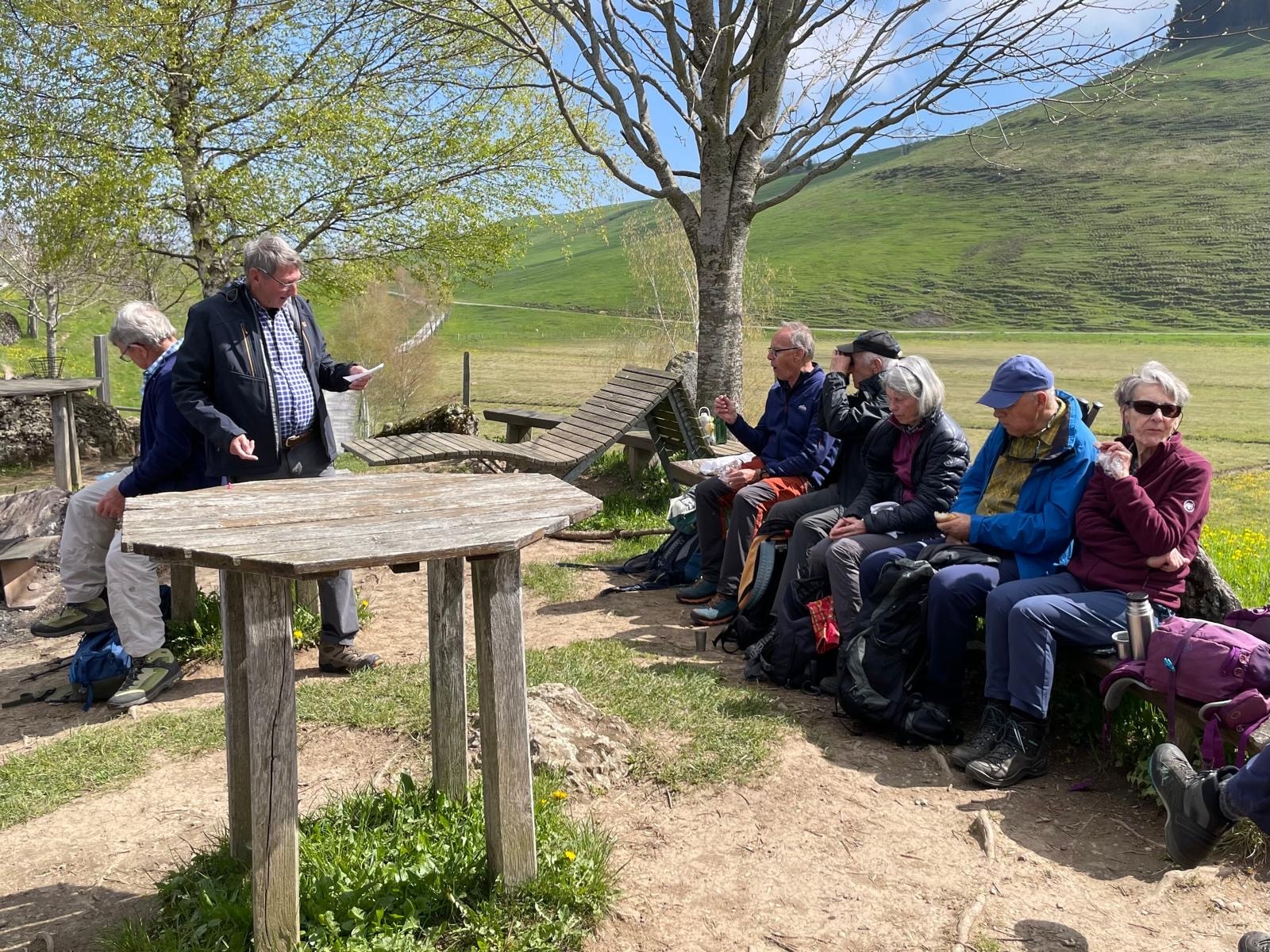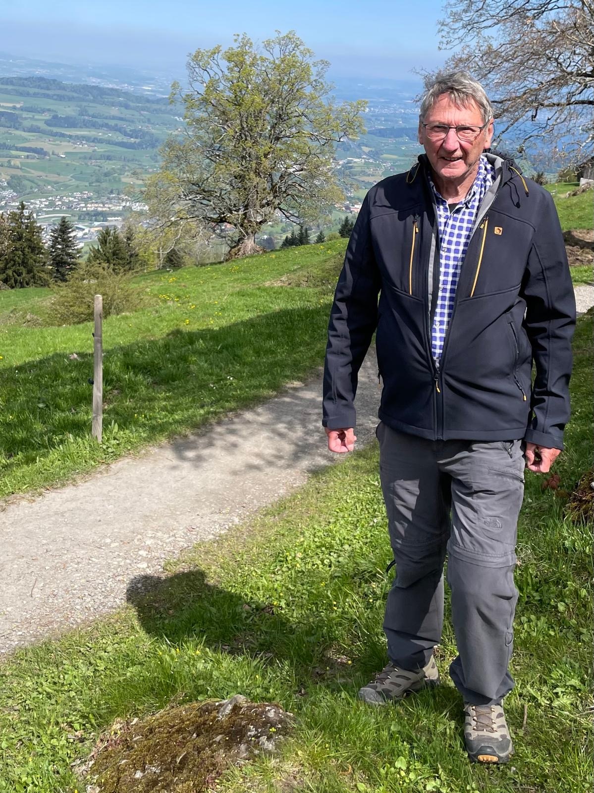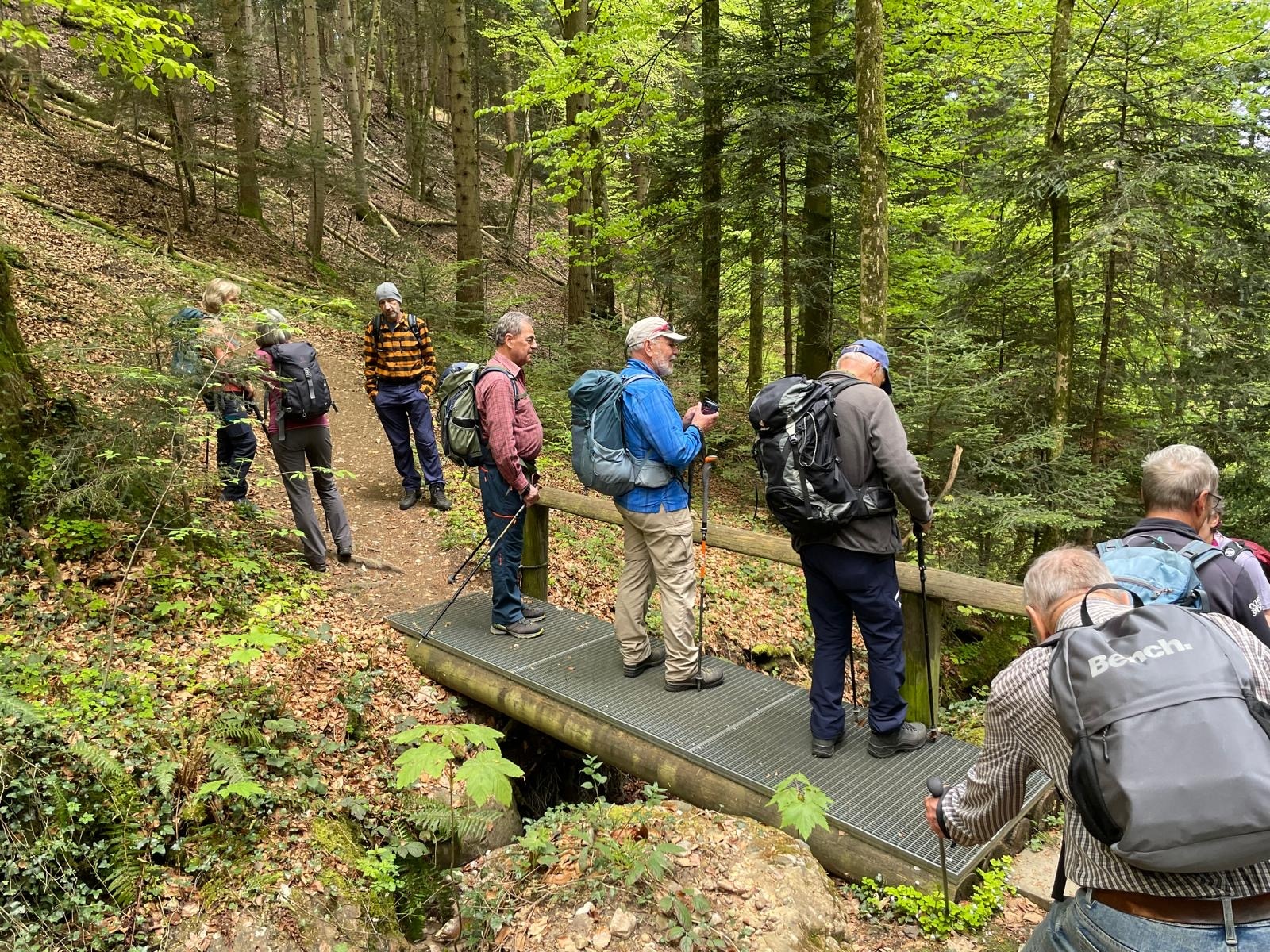 Beim Friedhof Küssnacht starten 22 Personen zur Tour auf die Seebodenalp. Auf Hartbelag ziehen wir hinauf zum Restaurant Alpenhof für den Kaffeehalt. Gestärkt folgt nun der relativ steile Aufstieg an blühenden Obstbäumen vorbei in den Wald mit vielen Treppenstufen. Die morgendliche Frische trug dazu bei, dass kaum jemand ins Schwitzen kam. Um die Mittagszeit erreichten wir unseren Pick-Nick Platz Färbers Egg und konnten auf freien Bänklein die mitgenommenen Speisen geniessen. Dazwischen erzählte uns Werner Episoden von seiner Heimat Küssnacht und der Rigi. Die leichte Bise sorgte bald für Hühnerhaut, sodass wir zum wärmenden Kaffee ins Restaurant Altruodisegg weiterzogen. Nach dem Getränk und zum Teil Dessert folgte der Abstieg via Steigade – Unter Flue – Chümimattli – Unterboden zurück zum Restaurant Alpenhof. Durch Wald- und Wiesenabschnitte war der Weg nicht mehr so steil. Die Sicht auf den See, Pilatus und das Unterland war eindrücklich. Nach einem Schlussgetränk (Rigi-Bier) in der Gartenwirtschaft folgte noch der kurze Abstieg zur Bus Station und die anschliessende Rückreise rundeten den schönen Wandertag ab.