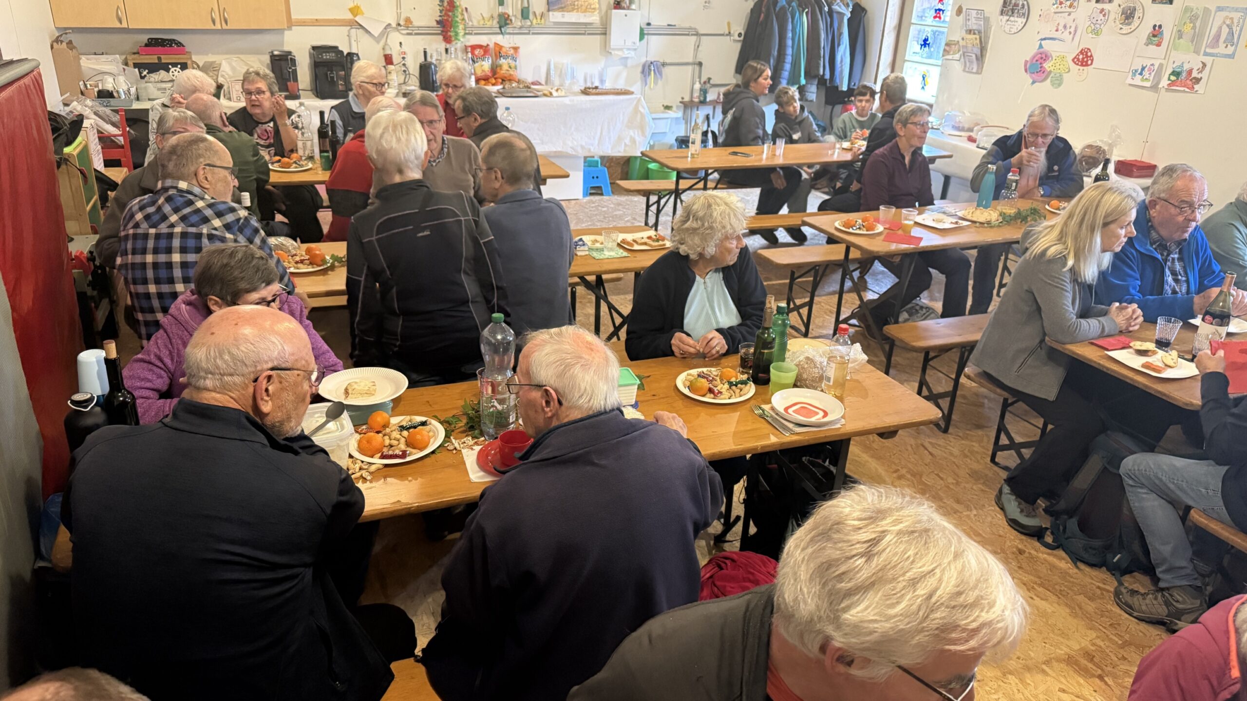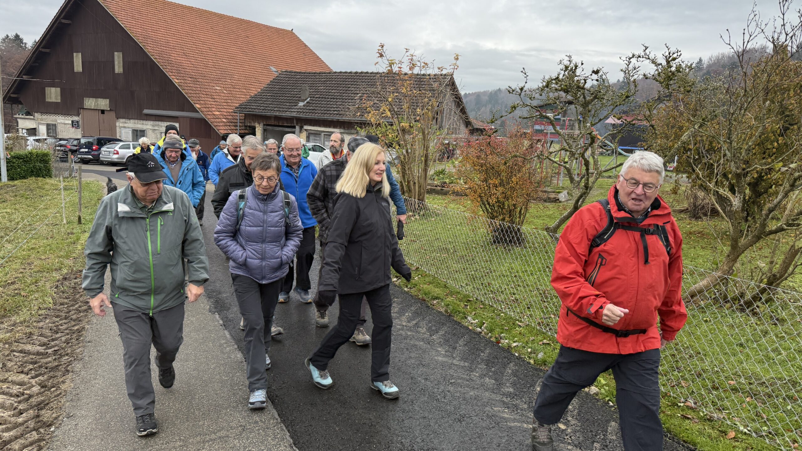 Dieses Jahr sind wir von den SAC – Mitglieder/innen aus der Region Mutschellen zu einem gemütlichen Nachmittag eingeladen. Alle die Lust auf eine kleinere Wanderung haben, fahren mit dem Velo, Auto oder kommen zu Fuss aus verschiedenen Richtungen zum Hof von Uschi und Wisel nach Schönenberg Bergdietikon. Um 10 Uhr sind 25 Personen bereit und Fredy führt die Gruppe bergwärts mit Blick übers Limmattal und der Grossstadt Zürich «Die Alpen sind leider von Wolken verdeckt». Auf der Anhöhe vom Egelsee stehen Sepp und Roli bereit mit einem kleinen gespendeten Apero. Nach geniessen des Aperos mit angeregten Gesprächen führt uns Fredy auf verschlungenen Wegen zurück auf den Hof von Uschi und Wisel, wo die Nichtwanderer auf uns warten. Das «Festlokal» ist mit Dekorationen von guten Geistern vorbereitet worden und nach dem zweiten Apero ist die Glut bereit zum bräteln. Alle ca. 50 Personen legen was auf den Grill oder ins Pfännli. Der Geschmack macht gluschtig, wir geniessen die selbst mitgebrachten Leckereien zu einem guten Tropfen. Anschiessend wird das Dessertbuffet mit den gespendeten Torten und Kuchen plus Kaffee eröffnet. Viel zu schnell geht’s dem Abend entgegen. Vielen Dank den Gastgebern, allen ungenannten Helfer/innen inkl. Torten / Kuchen und Aperospender/innen. Schön wars auf dem Schönenberg.