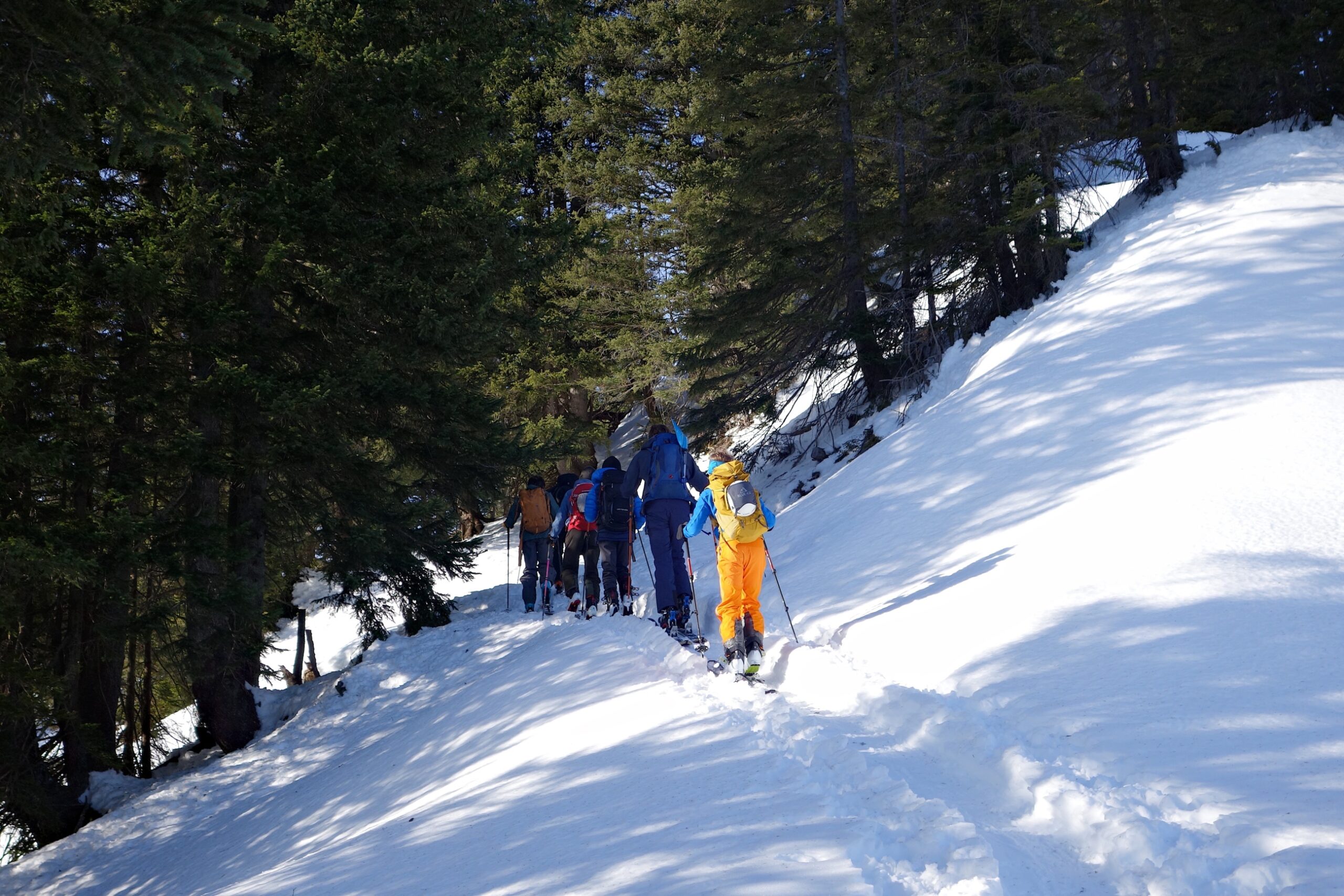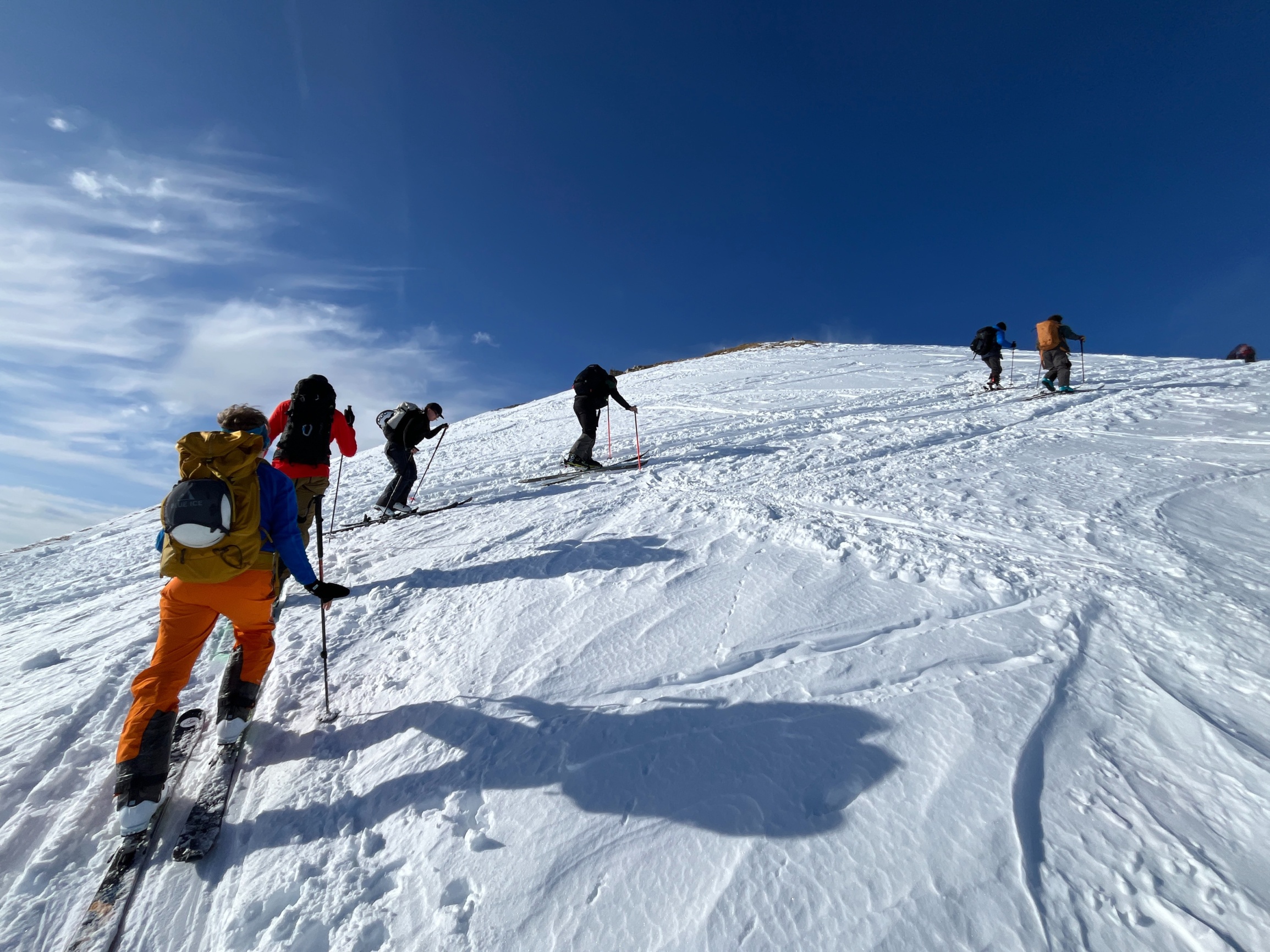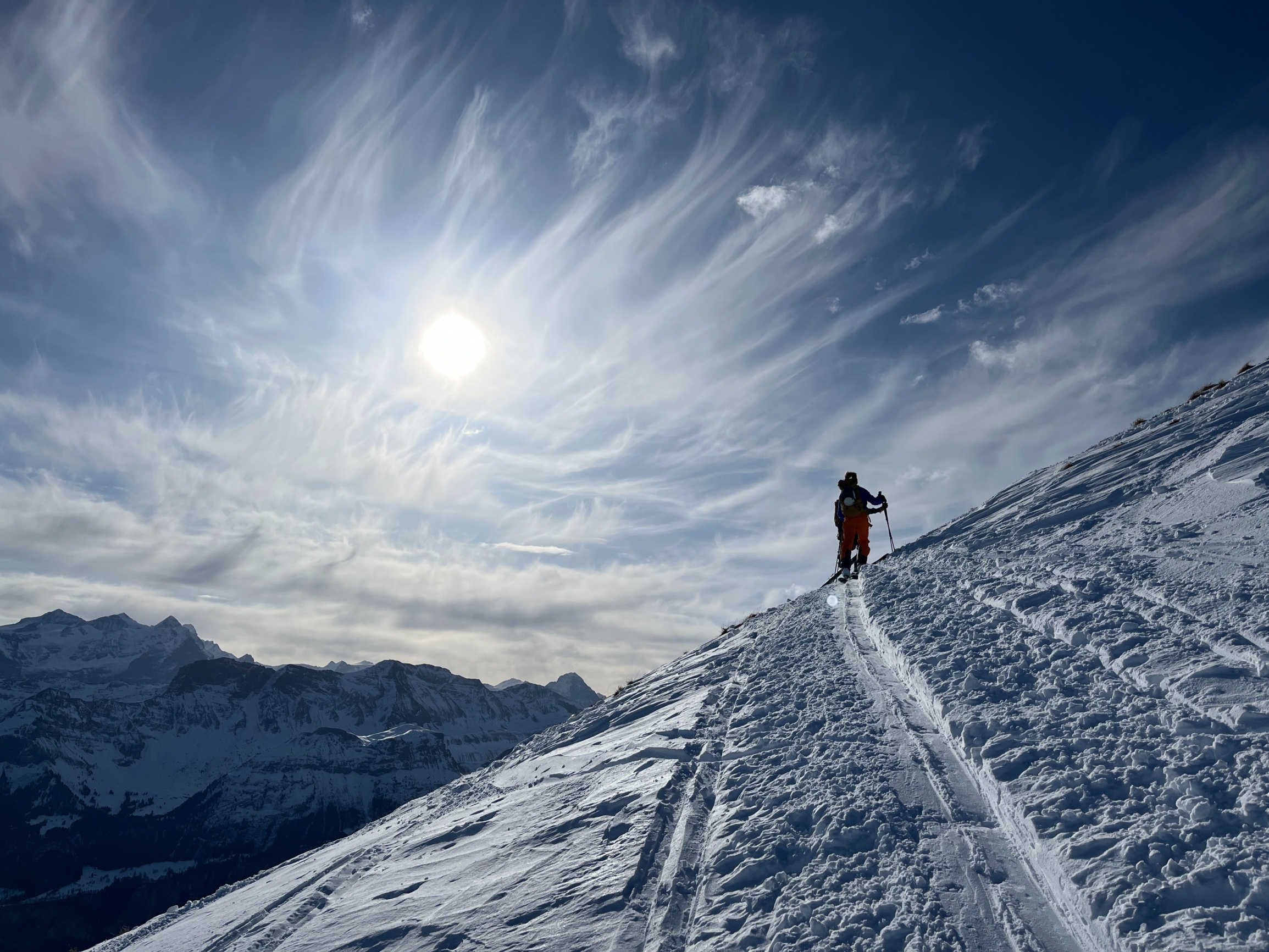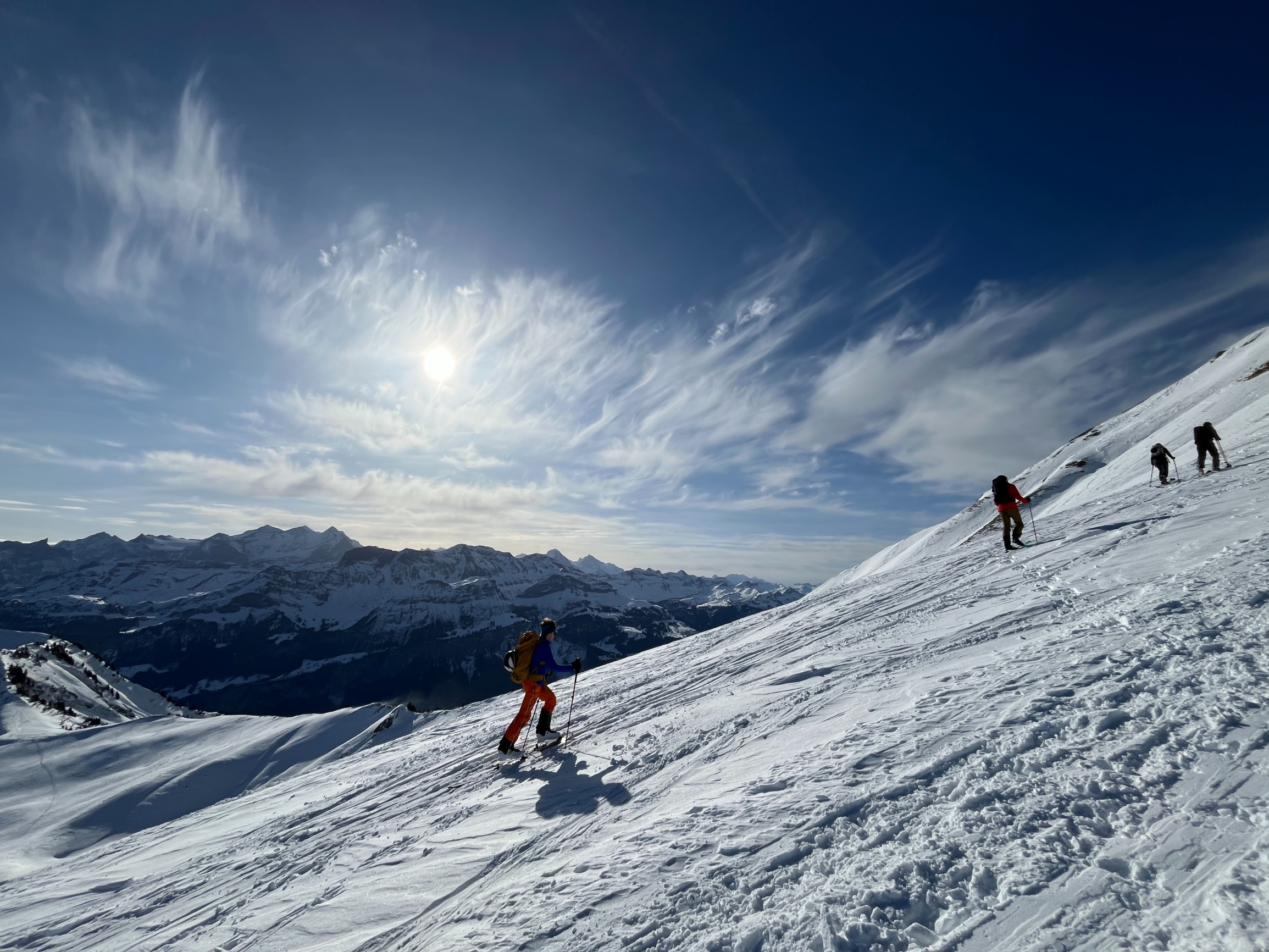 Trotz der vielen Tourengänger gab es für alle tolle Schwünge in gutem Schnee, wenn auch nicht mehr unverfahren…