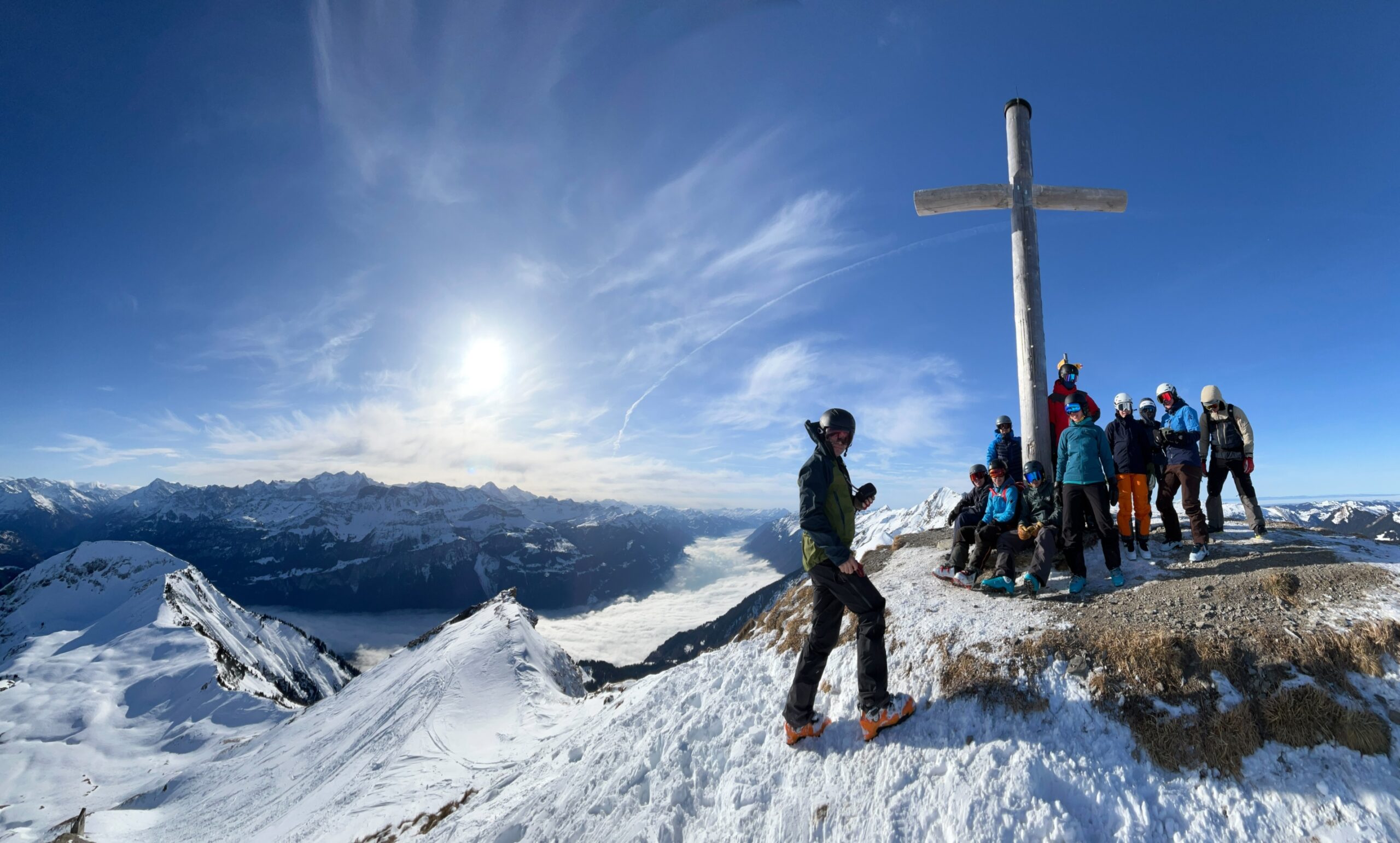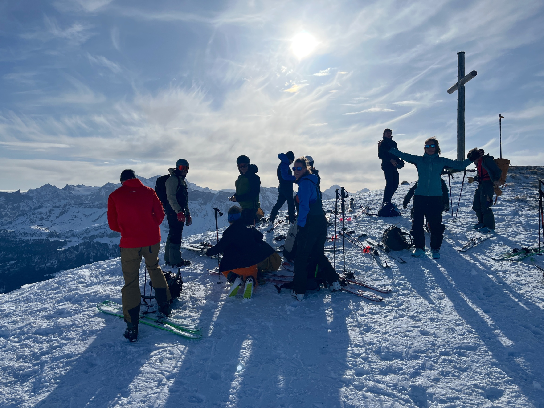 Eine weitere Einsteigertour stand diesmal auf dem Programm. Eigentlich war es egal wohin, Hauptsache höher als die Nebeldecke soll es sein. So fand sich eine grössere Delegation schneeliebender JOLerInnen zum Anstehen beim Lungeren-Turren-Bähnli zusammen. Schon bald wurden wir anstrengungslos über die Wolken getragen und konnten auf unseren Skis starten.