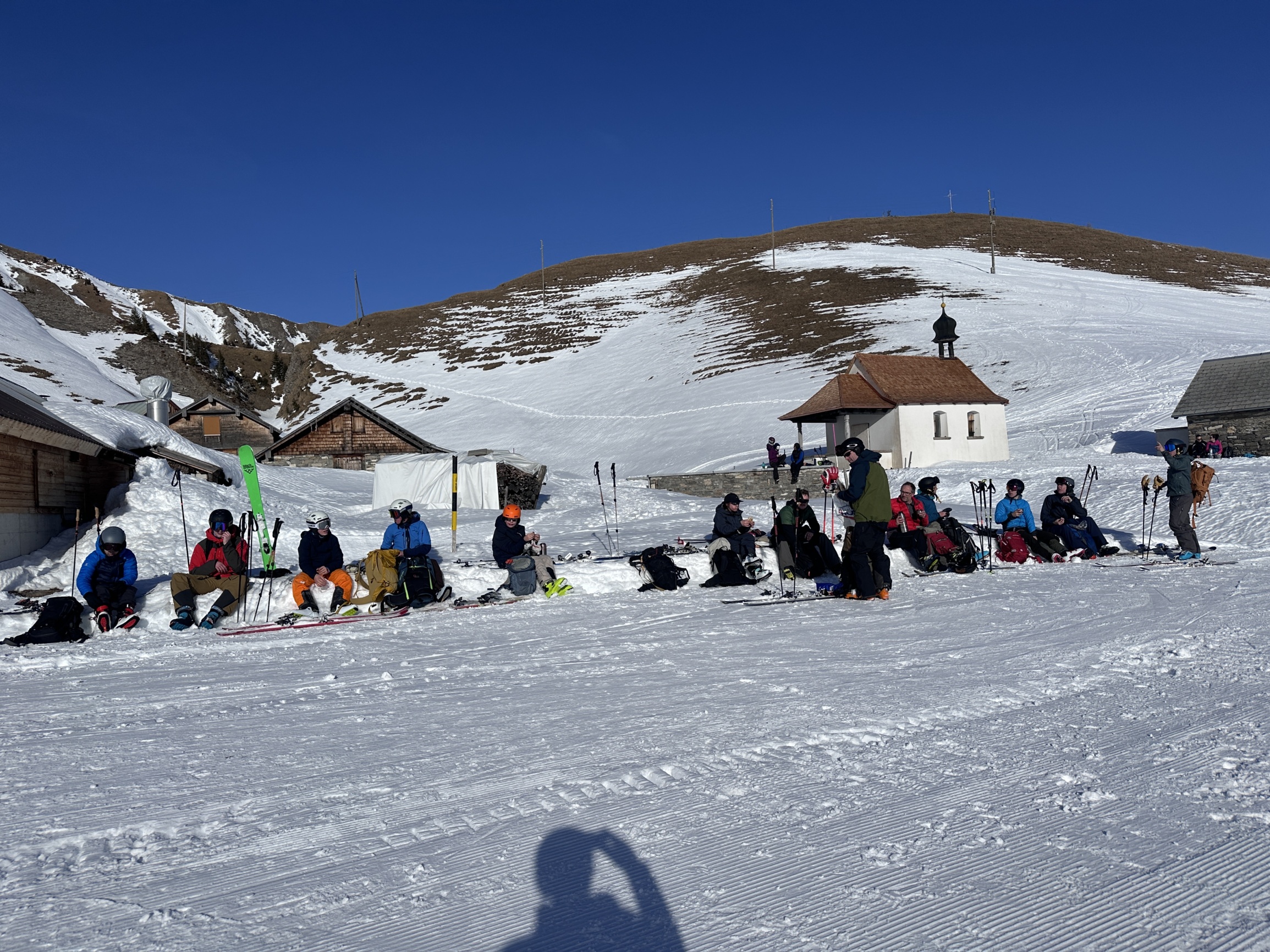 Noch eine Pause an der Sonne und schon trug uns das Bähnli zurück unter die Wolkendecke in den grauen Flachländeralltag. Hoffentlich gibt es noch mehr solche Sonnen-Schnee-Tage dieses Jahr!