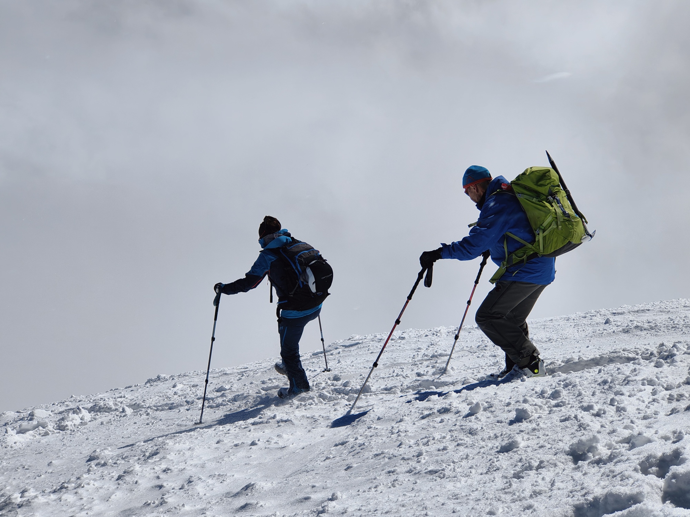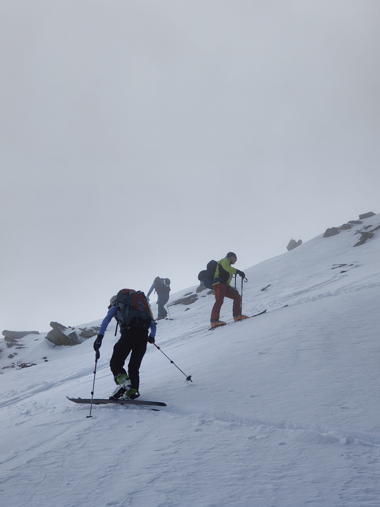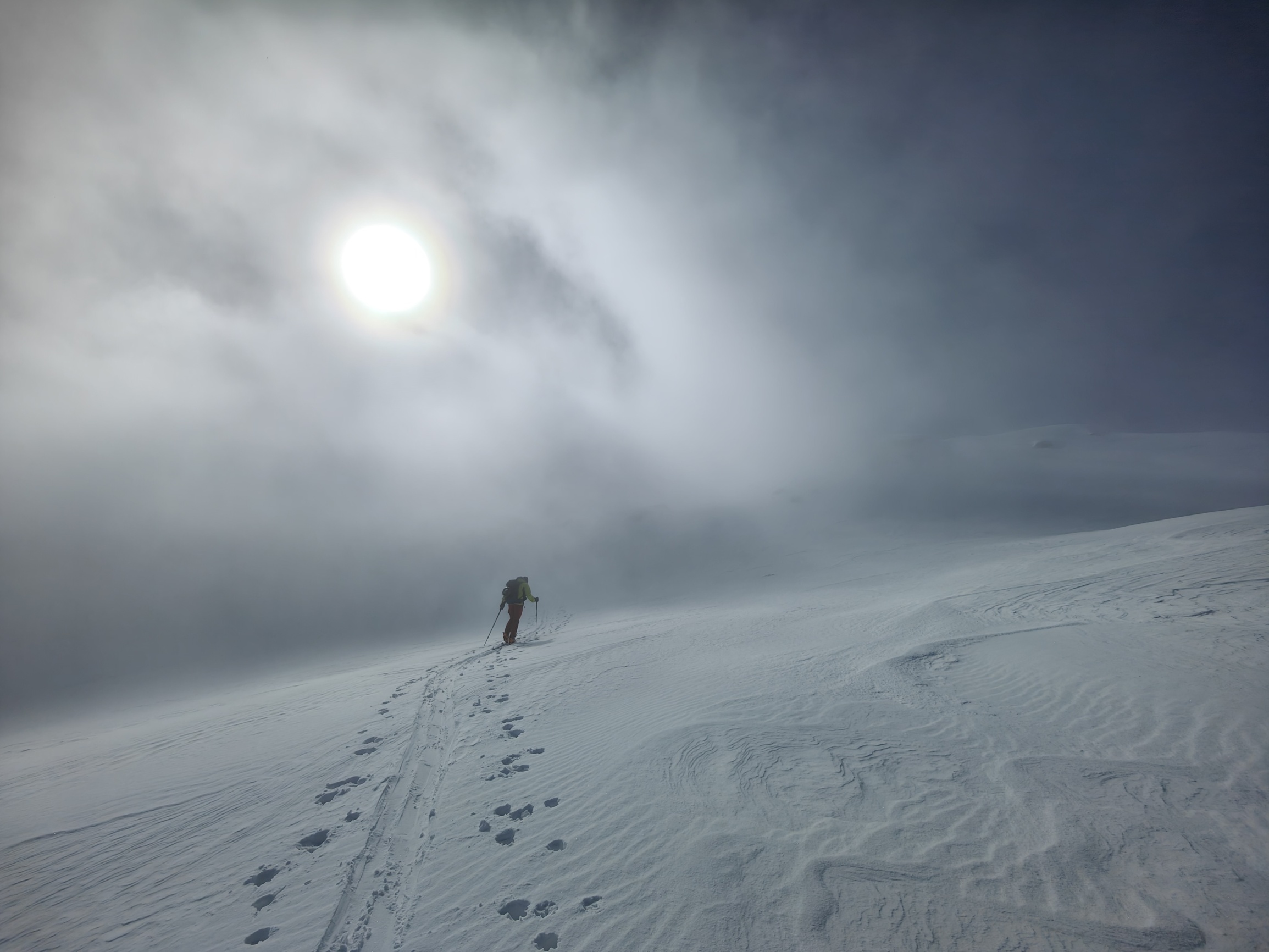 Je höher wir stiegen, desto deutlicher zeigte sich, dass die Schneemassen und die Anzeichen auf mögliche Gefahren einen Aufstieg bis in den Sattel nicht zuliessen. Nach rund 600 Höhenmetern entschieden wir gemeinsam, umzudrehen – eine Entscheidung, die sowohl sicherheitsbewusst als auch stimmungsvoll war, denn die verschneite Umgebung bot trotz der eingeschränkten Verhältnisse ein schönes Naturerlebnis.