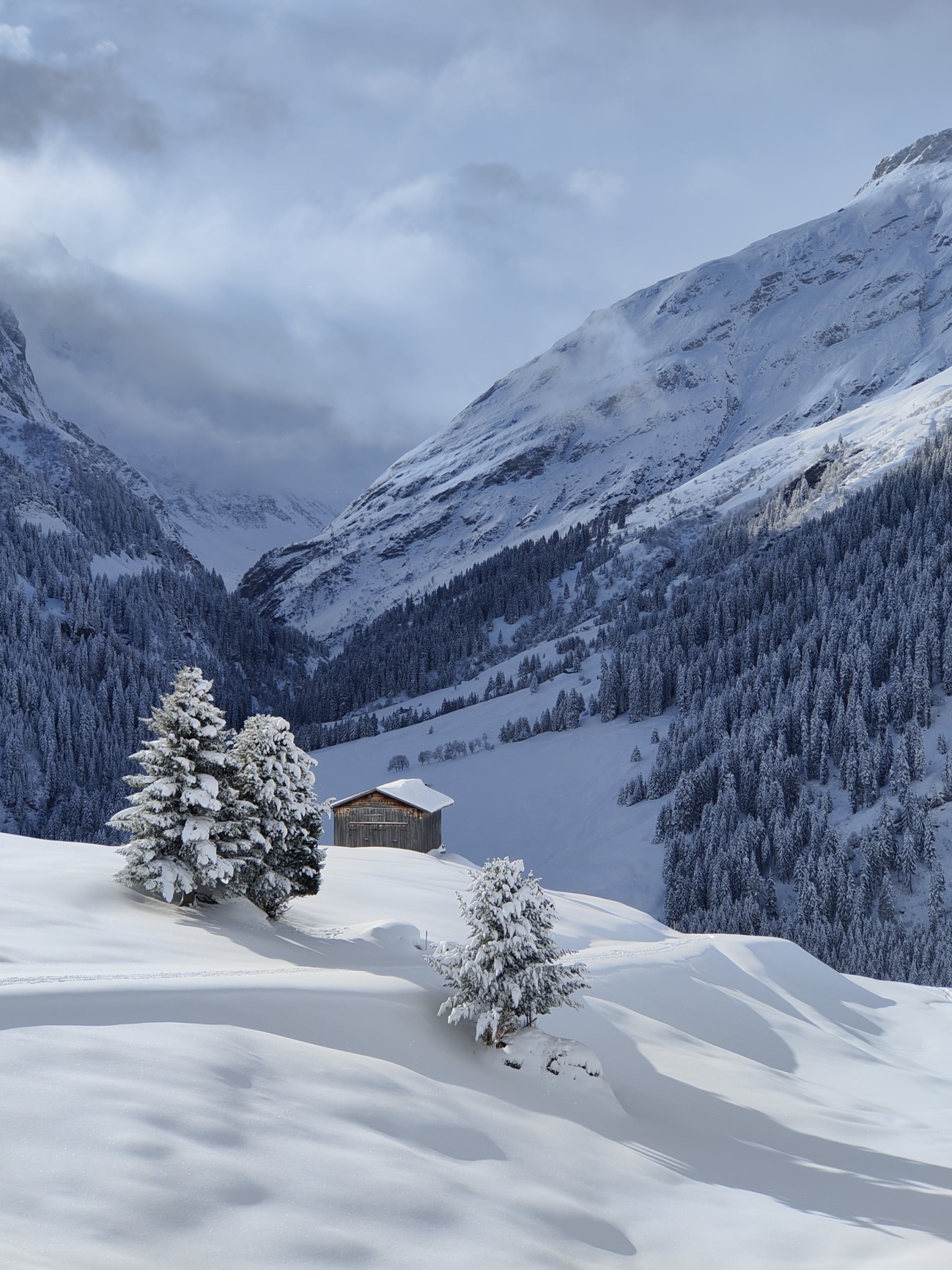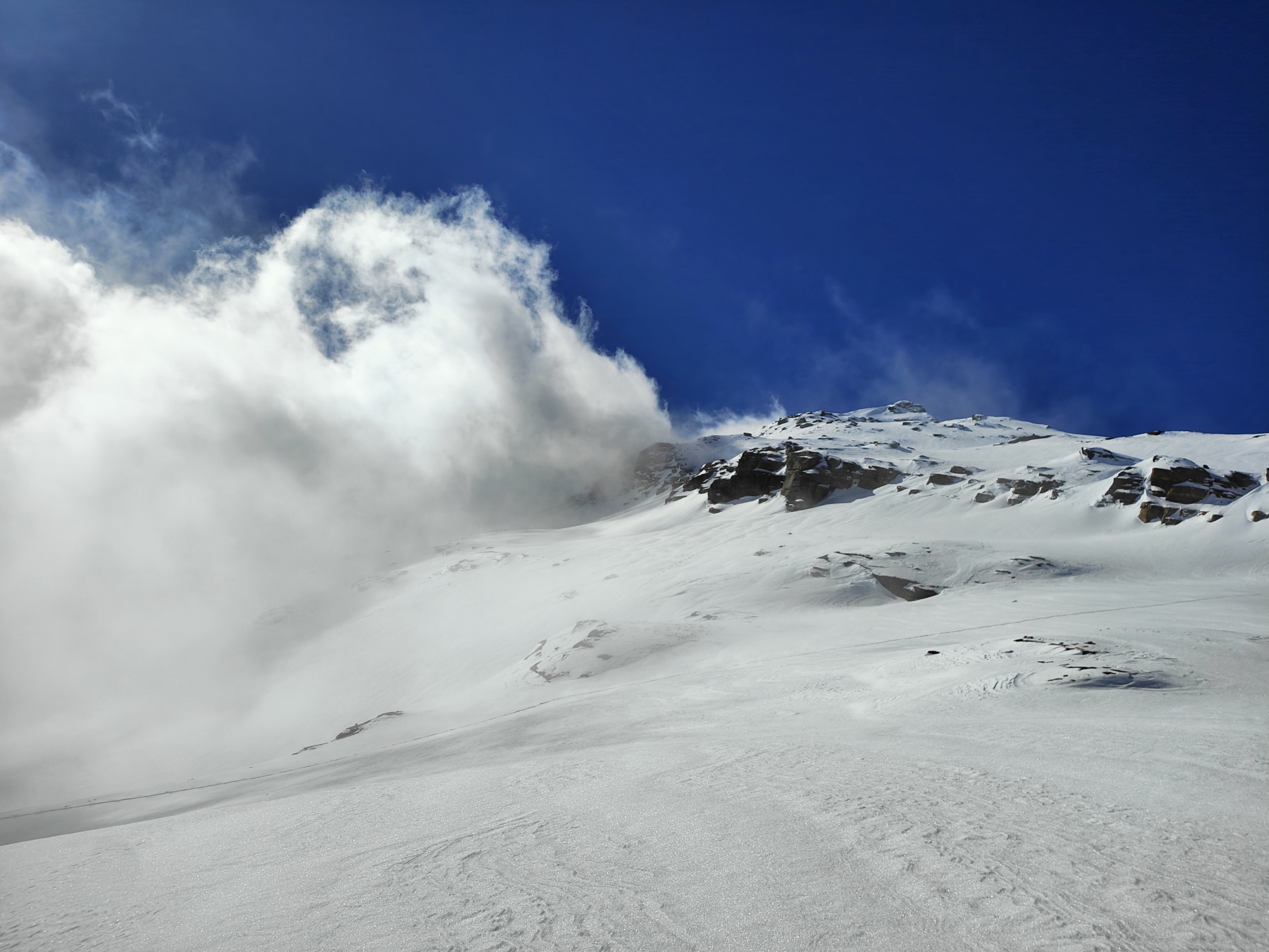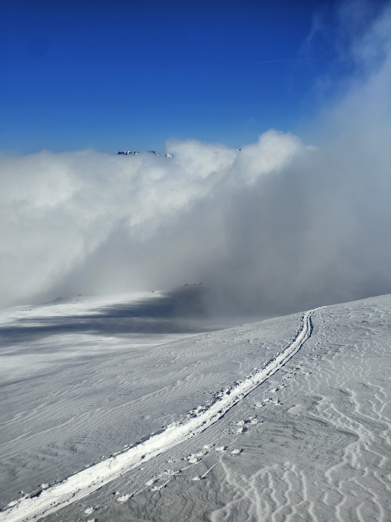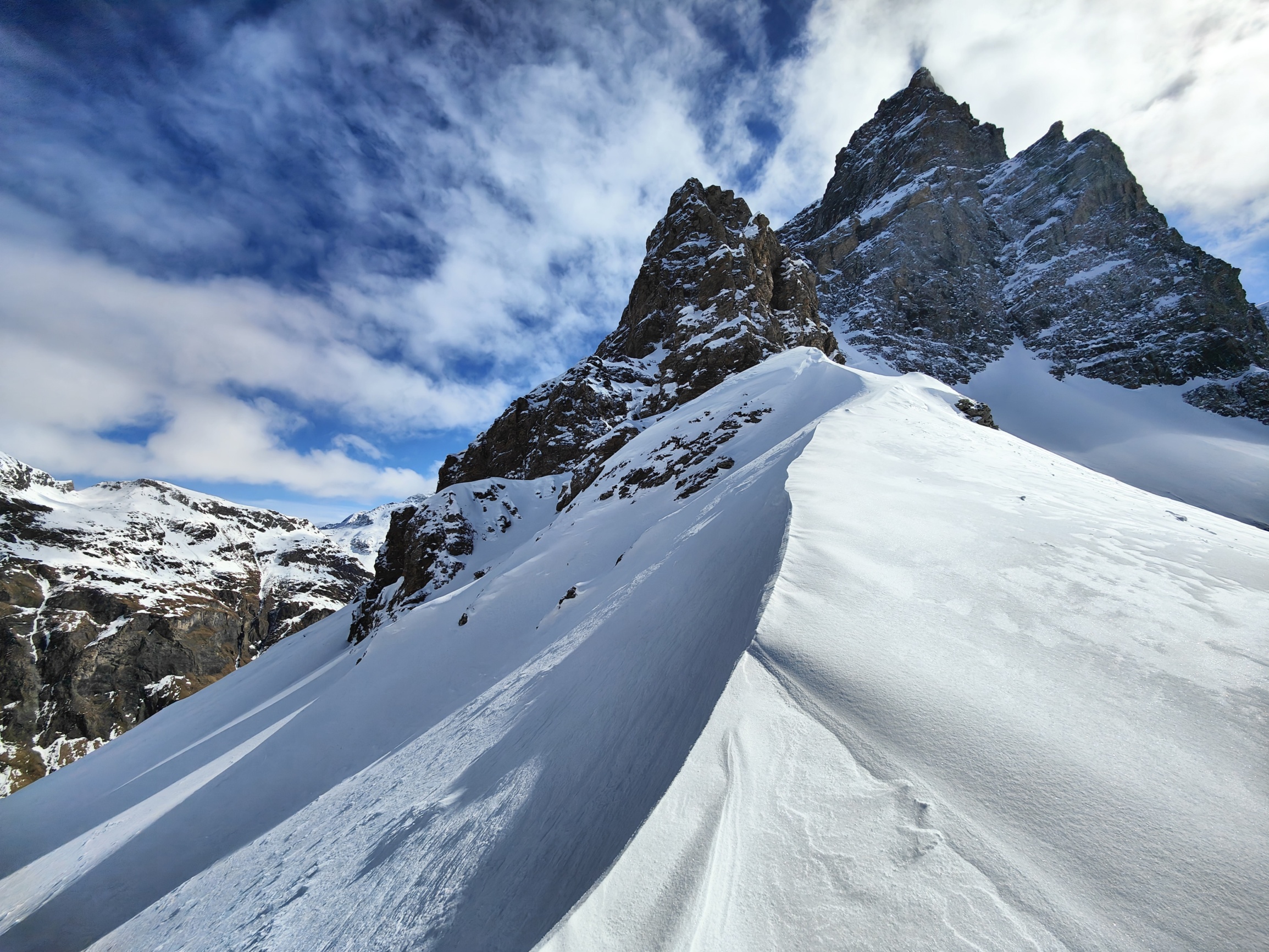 Je höher wir stiegen, desto deutlicher zeigte sich, dass die Schneemassen und die Anzeichen auf mögliche Gefahren einen Aufstieg bis in den Sattel nicht zuliessen. Nach rund 600 Höhenmetern entschieden wir gemeinsam, umzudrehen – eine Entscheidung, die sowohl sicherheitsbewusst als auch stimmungsvoll war, denn die verschneite Umgebung bot trotz der eingeschränkten Verhältnisse ein schönes Naturerlebnis.