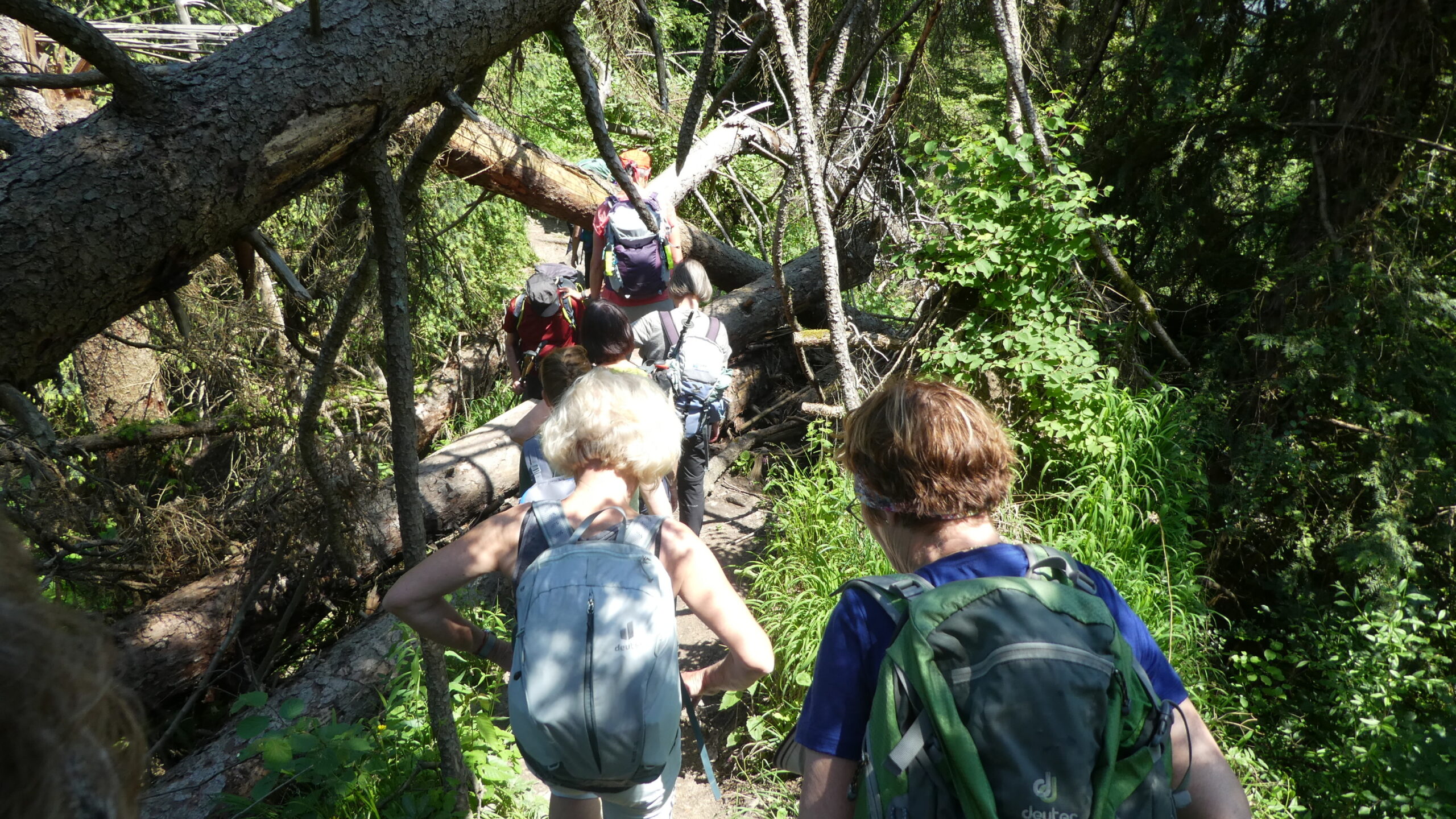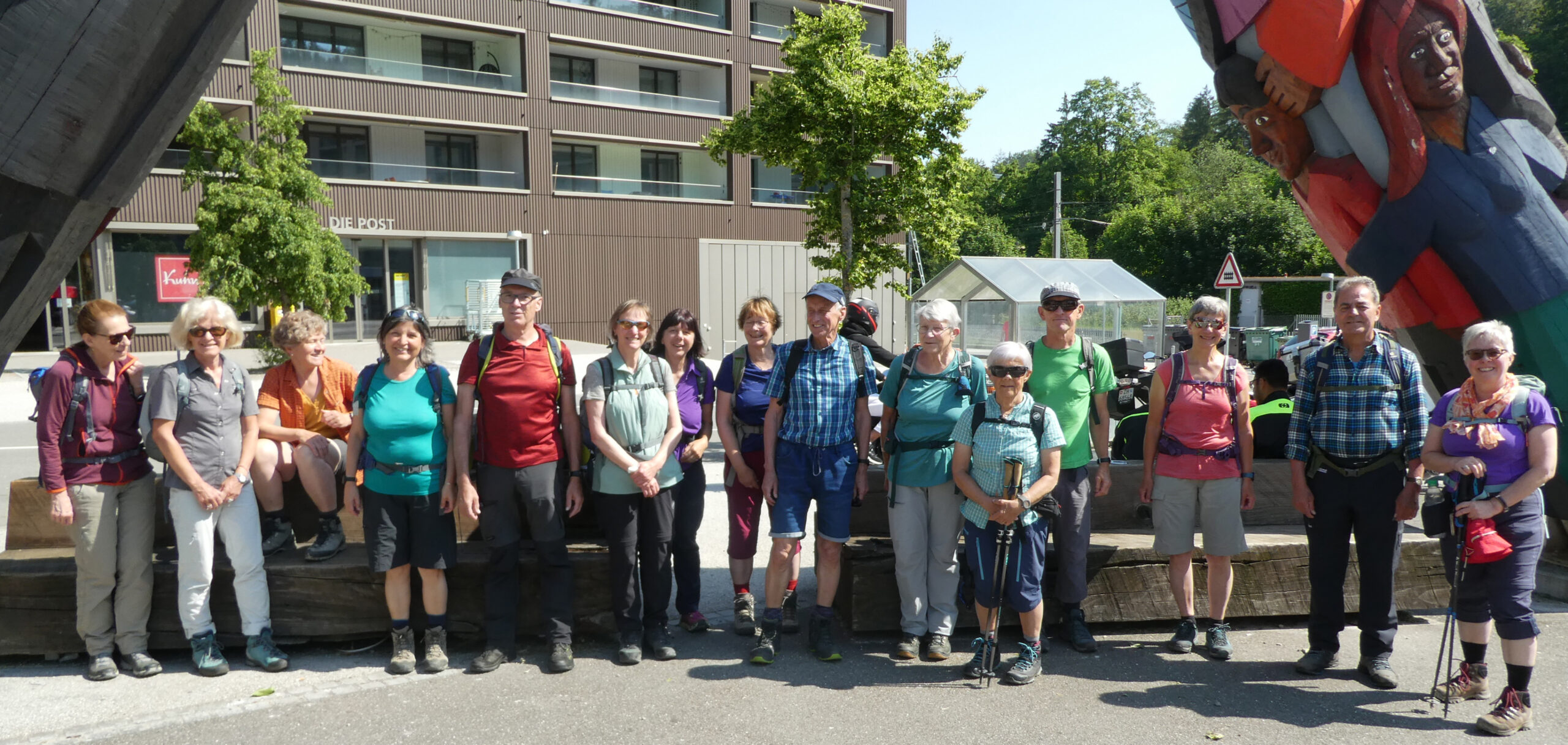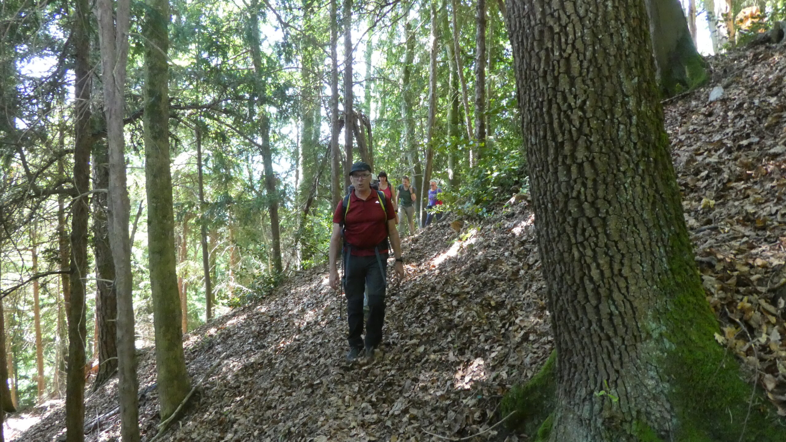 Mit ÖV fahren der Tourenleiter Othmar Huwyler und 15 Wanderbegeisterte nach Zürich und weiter mit der Sihltalbahn bis Zürich Manegg (zum Tor von Zürich). Nach dem Startkaffee marschieren wir 16 nach Leimbach und auf unbezeichneten für fast alle auf unbekannten Wegen auf der Ostseite des Uetlibergs bergauf Richtung Uetliberg Grat. Die kleinen Weglein sind meist trocken mit einzelnen kurzen nassen Stellen verlaufen immer wieder Bächlein entlang steil bergauf und dann wieder querend zur nächsten Runse. Der Aufstieg ist abwechslungsreich meist im Schatten der Bäume. Auch haben wir immer wieder schöne Ausblicke hinunter über die Stadt Zürich, dem See und der Goldküste. 1906 wurde der «Alpenklub Fallätschen» gegründet und die Gründer bauten ein kleines schönes Hüttli = Das Teehüttli «Steile Wand». Es ist leider nur Samstag/Sonntag bewirtet, wir geniessen in Ruhe auf dem Sitzplatz an der Sonne die Aussicht und das mitgetragene Pick-nick. Weiter führt uns Othmar hinauf zum Grat und auf dem Gratweg Richtung Uetliberg Kulm. Schon wieder ein verschlungenes Weglein führt im Zick-zack bergab zu einer Hochwacht Ruine mit Blick über die Stadt und von der Lägern bis zu den Glarner Alpen. Weiter geht’s und schon stehen wir bei der Haltestelle Triemli, der Uetlibergbahn. Im Restaurant Ferderal löschen wir den Durst bevor wir zurück ins Freiamt fahren.