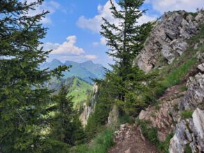 Am ersten Tag fahren wir mit dem Sessellift von Jaun hoch zum Musersbergli. Dort stärken wir uns mit einem Startkaffee. Wir wandern zuerst ein kurzes Stück bergab aber schon bald geht es nach Grat hinauf. Dieses Bergbeizli lassen wir aber rechts liegen und gehen weiter bergauf, der eindrucksvollen Südflanke der Gastlosen entlang. Über Alpweiden kommen wir zum höchsten Punkt, dem Wolfs Ort (1915m), der einzige Übergang über die Gastlosen. Nach dem wir die herrliche Bergwelt bewundert haben, kommen wir zu einem technisch anspruchsvolleren Teil der Tour. Über Geröllfelder und losen Steinen, dem Berg seitlich entlang wandern wir hinunter zu unserem ersten Etappenziel, dem Chalet du Soldat.