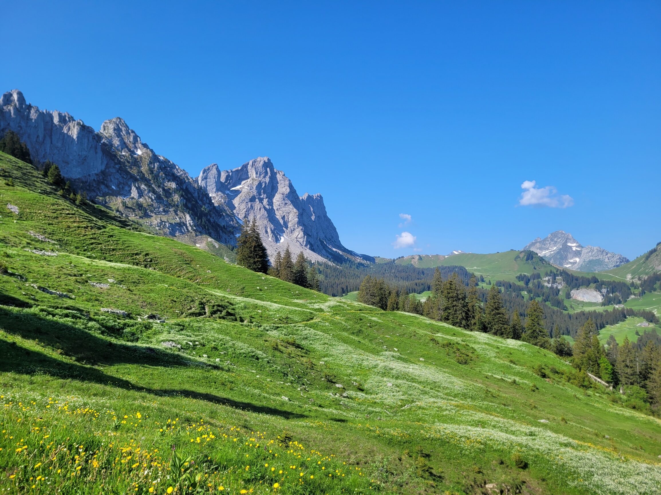 Auf dieser Tour entdecken wir die unbekannten Voralpen in den Kantonen Freiburg, Waadt und Bern. Es ist eine attraktive, liebliche Gegend und bietet uns immer wieder fantastische Ausblicke auf die umliegenden Gipfel und eine grossartige Blumenvielfalt.